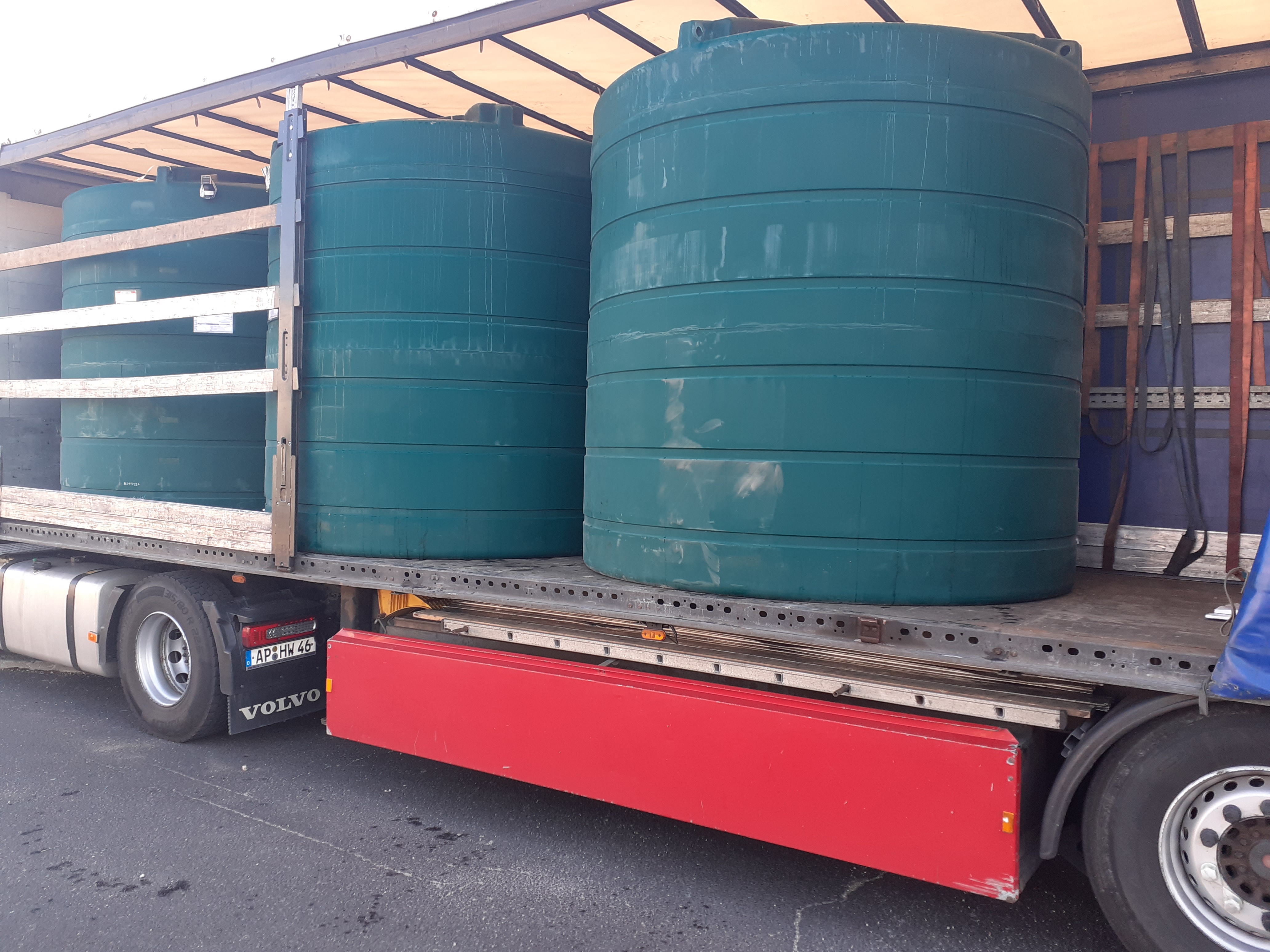 Arrivé à 16h30. Le temps de chargement est jusqu'à 16h00. Il n'y a nulle part où passer la nuit avant 17h00. Ensuite, tout le monde rentre chez lui et vous pouvez vous tenir sur le parking pour voitures ou sur un terrain en terre battue ou parmi les tonneaux. Ils m'ont chargé de 4 barils en plastique, chacun mesurant 3 m de long, de large et de haut, pour toute la remorque. 4 fûts - remorque complète. Déchargement des agriculteurs. Le chargement commence à 8h00